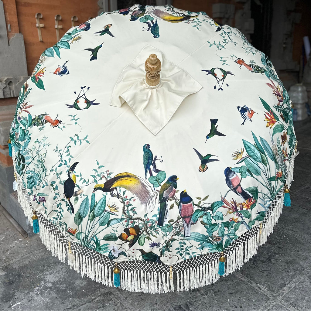 Our bamboo parasols are made by Balienese artisans in over 20 separate stages, using traditional techniques which take days to complete. We are proud of our role in keeping artisans in work and their skills alive. The fact that the parasols are handmade is an essential element of their appeal: many of these processes cannot be mechanised without compromising the beauty and personality of the fabrics.