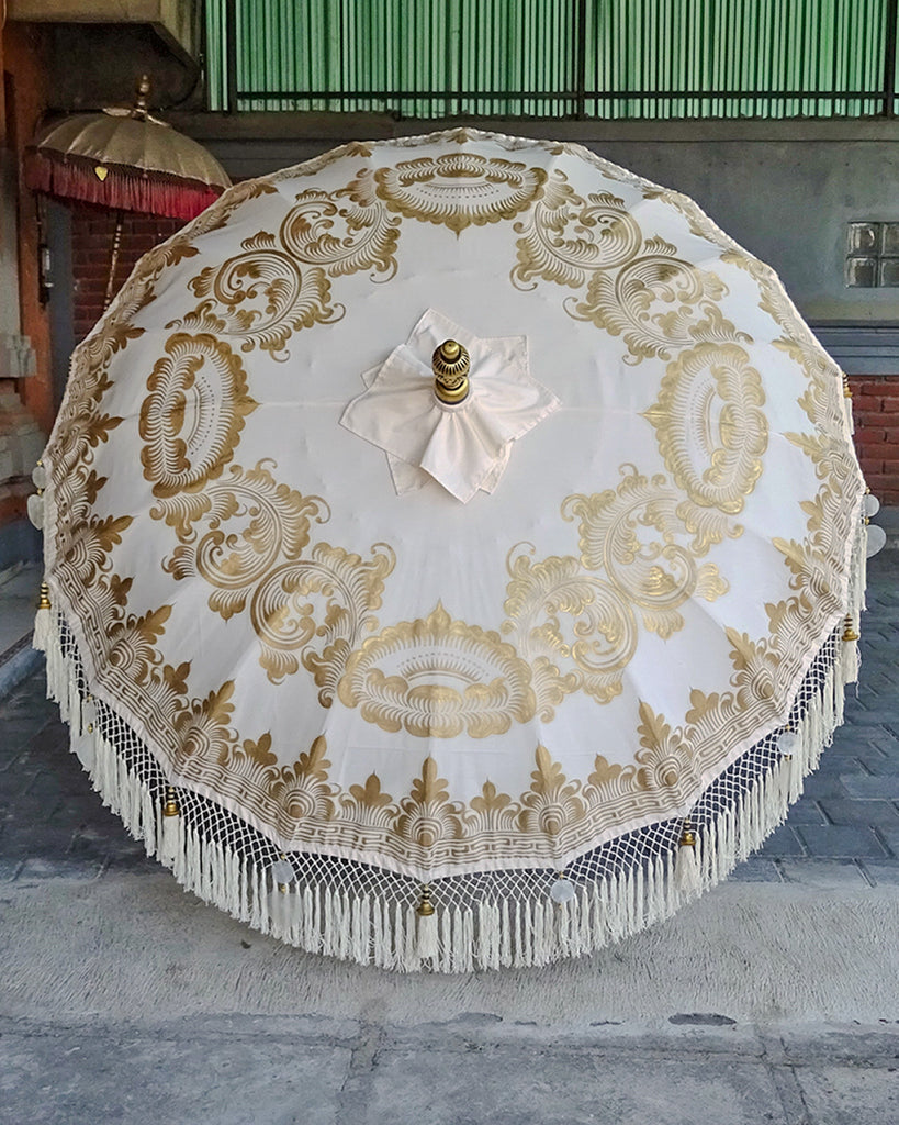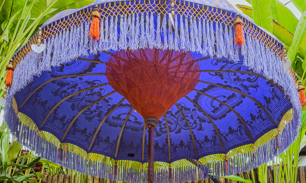 A magnificent piece of craftsmanship that has been lovingly created with precision and passion. Each parasol is a work of art, taking up to 30 days to complete. With its intricate details and beautiful colors, the Baliaric Balinese Parasol is the perfect addition to your home. Create your own oasis and relax in style with this spectacular parasol.