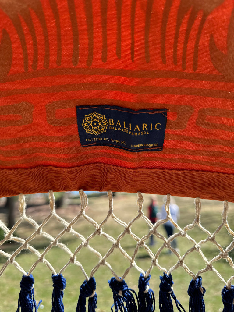 Handmade in Bali, this parasol undergoes over 20 meticulous stages—from bamboo carving and painting to brass detailing—ensuring a flawless and high-end patio umbrella finish.